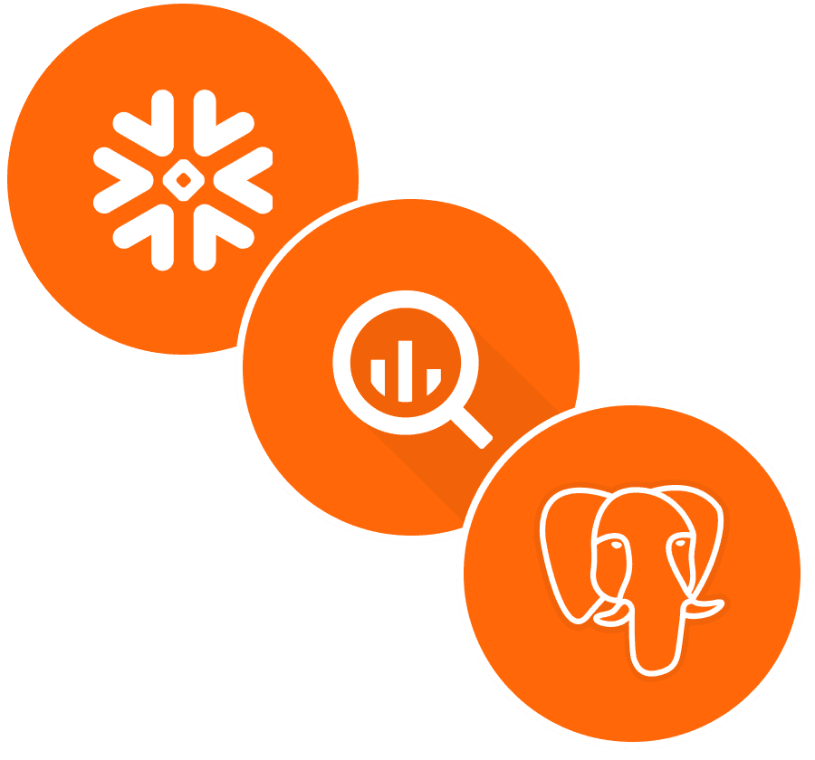 Databases & warehouses Snowflake, BigQuery, Postgres,